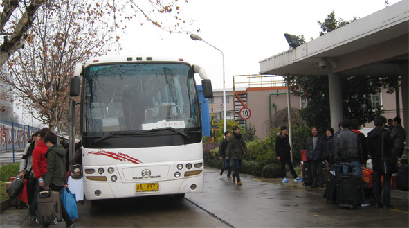 2月10日早晨,一辆满载着回乡员工、大包小包塞满行李箱的大巴车缓缓驶离厂区,这已经是公司第六年集中包租大巴送员工返乡。由于公司外地青年员工主要集中在建德地区,考虑到员工春节回家购票难、东西多及乘车安全等诸多因素,每年公司都提前与长运公司联系好车子,保证外乡员工能够及时、顺利、安全返乡。